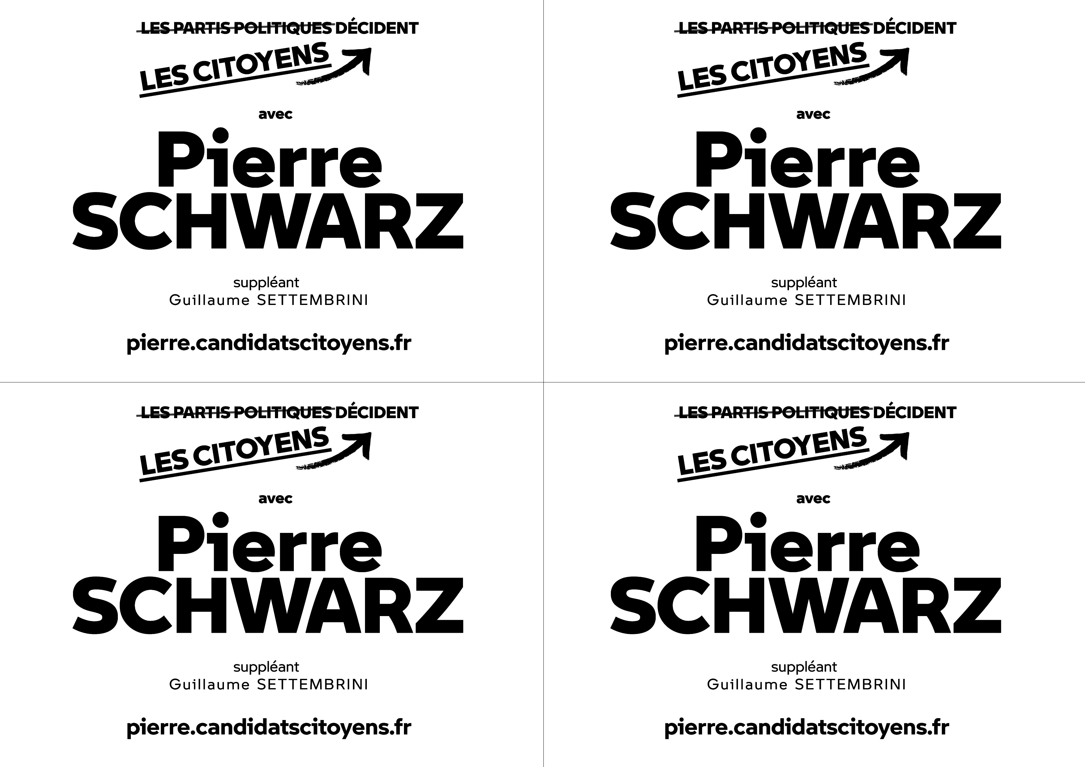 Le bulletin de vote ne se trouvera pas dans tous les bureaux de vote, pour des raisons écologiques et économiques. Si vous ne le recevez pas par courrier, il est donc important de l'imprimer vous-mêmes. L'image contient 4 bulletins à imprimer sur une page A4 et à découper proprement selon les traits. La taille d'un bulletin doit être de 105 x 148 mm. Donnez les autres bulletins à vos amis, vos voisins...